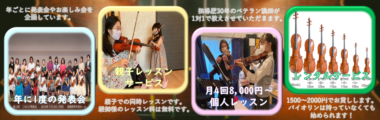 石井バイオリン教室では相模原市南区 大野台近辺にお住いの方になるべく身近に習い事をして頂く為に、レッスンはもちろん、バイオリンのレンタル代から親子レッスン等、通常のバイオリン教室に比べてとても身近な料金で教室を運営させていただいております。
